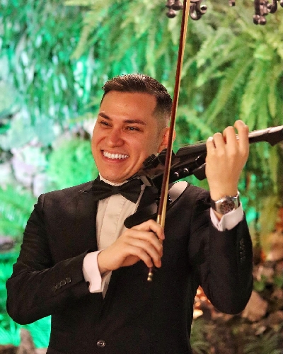 Luego de más de 11 años de experiencia con el violín, tocando alrededor del mundo entero en varios de los escenarios más importantes de cada país, y hasta para los Reyes de España, llegó un punto en mi vida en el que descubrí que no existe mejor complemento para los eventos, que las melodías del violín. Con los sonidos más dulces y románticos que suenan a través de mi violín, y las músicas favoritas de cada cliente, logro tocar las fibras más profundas y delicadas de los corazones de todas las personas, para que así puedan tener una celebración increíble, una fiesta fenomenal, una experiencia de otro planeta, y que ellos puedan tener realmente la fiesta de sus sueños.